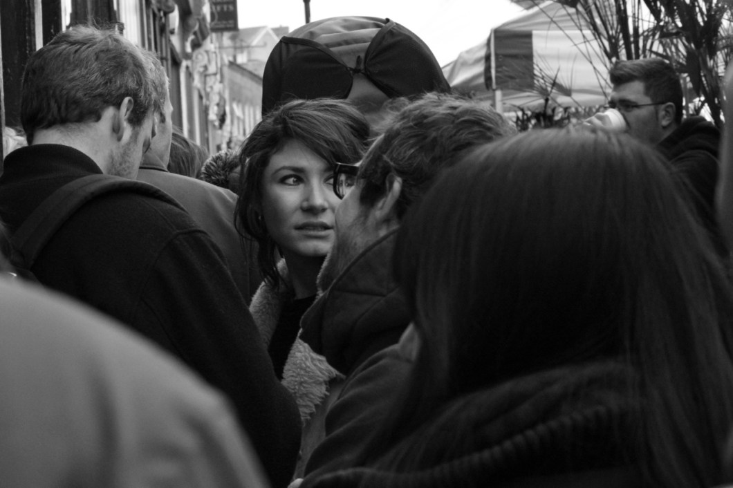 They didn’t know each other as they were waiting for coffee, but her face was captured in his glasses and refracted back to me.
