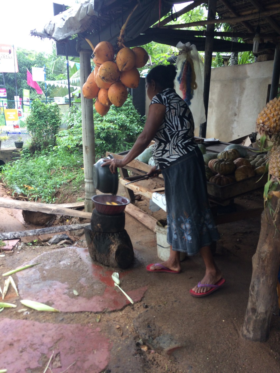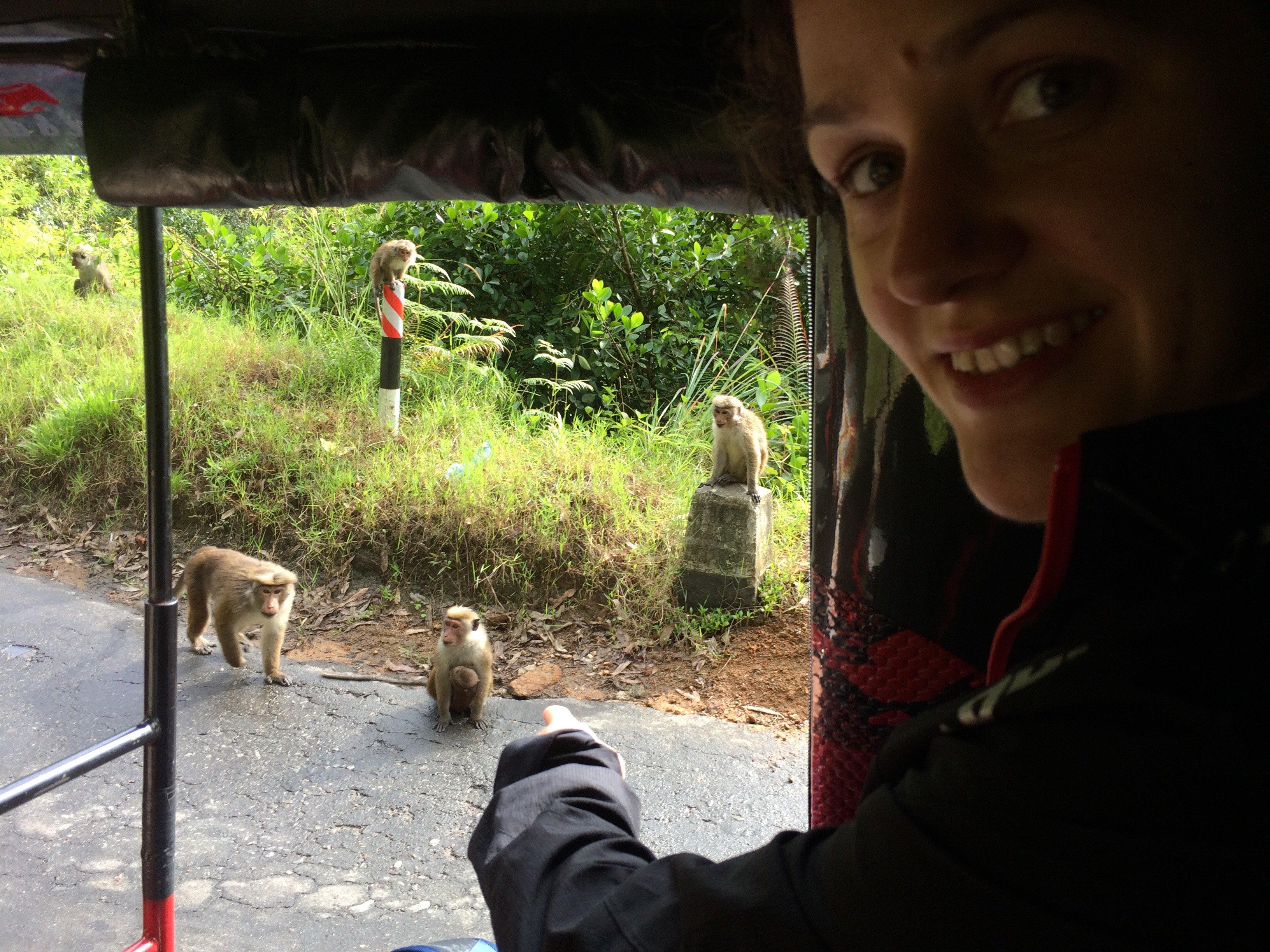 At the beginning of your trip, a policeman had to teach you how to hail a bus. You learned to pay with the brightly colored notes, and get a receipt, and avoid injury as the bus slammed from left to right, then sped up, then screeched to halts, the horns tooting various signals – warnings, “I’m coming,” “I’m here too,” “I’m overtaking you,” “I’m going slower so you should overtake me,” “Dog, keep lying down in the middle of the road, I will go around you.” In a random two-minute period during that first bus ride, when, for fun, you decided to count, the driver used his horn 24 times. In Colombo, almost all of the horns are angry, like they are in America. As you leave Colombo to go to the airport, the tuk-tuk driver brings you to the central bus depot, then uses his tuk-tuk to trap the over-crowded airport bus in its berth to keep it from leaving. You get your bags on board, then wedge in between two men, one of whom sings along to every song that comes on the radio in a clear, strong voice. You pay the conductor, and, as people get on and off, you switch seats, surfing in the aisles when necessary. Despite all the strangeness and frustrations, the differences, the inequality, and the ugliness, there is far, far more beauty in Sri Lanka than you’ve seen almost anywhere else, and you think that you could live here, quite happily, if you had to.