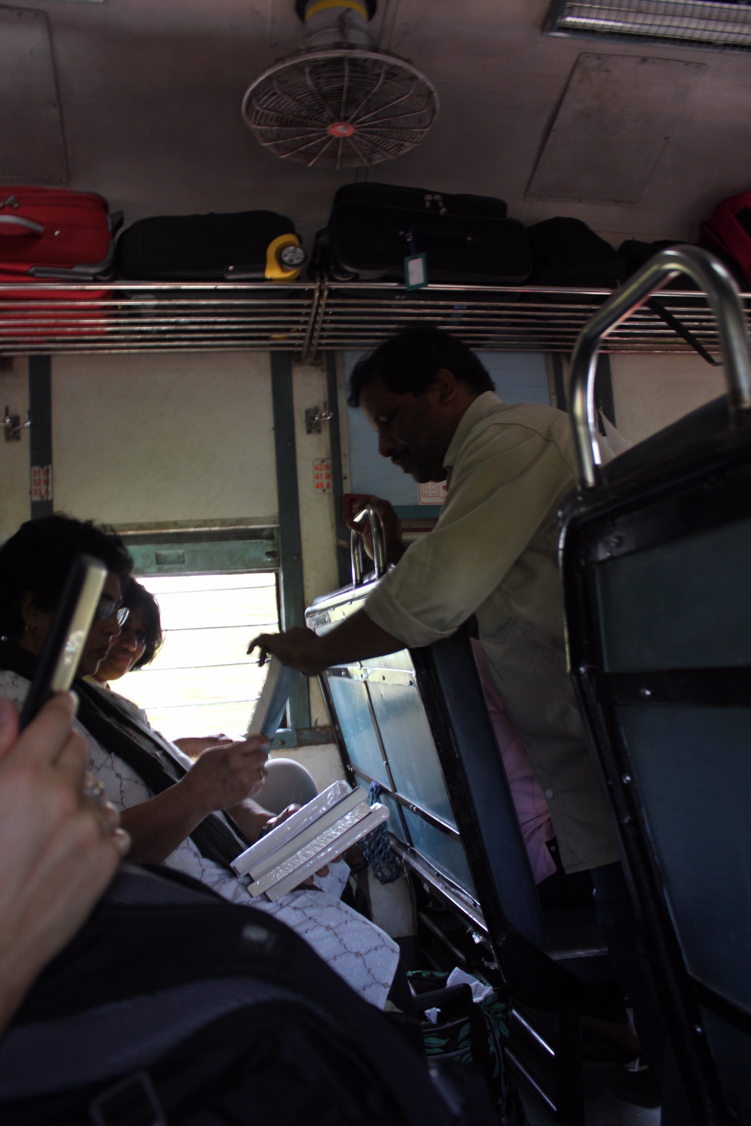 In Sri Lanka, we got used to vendors walking up and down the train carriages selling water, soda, samosas, chips, coffee, tea, tomato soup, yogurt, etc. On the train from Kochi to Kannur in India, however, we saw this man, walking up and down the carriages with books. First thought: hmm, odd. Second thought: AMAZING!!! Because if you have a literate society interested in ideas and culture, and they often have train journeys of 6-30 hours, selling books is a brilliant idea. (The lady across from us bought three.)