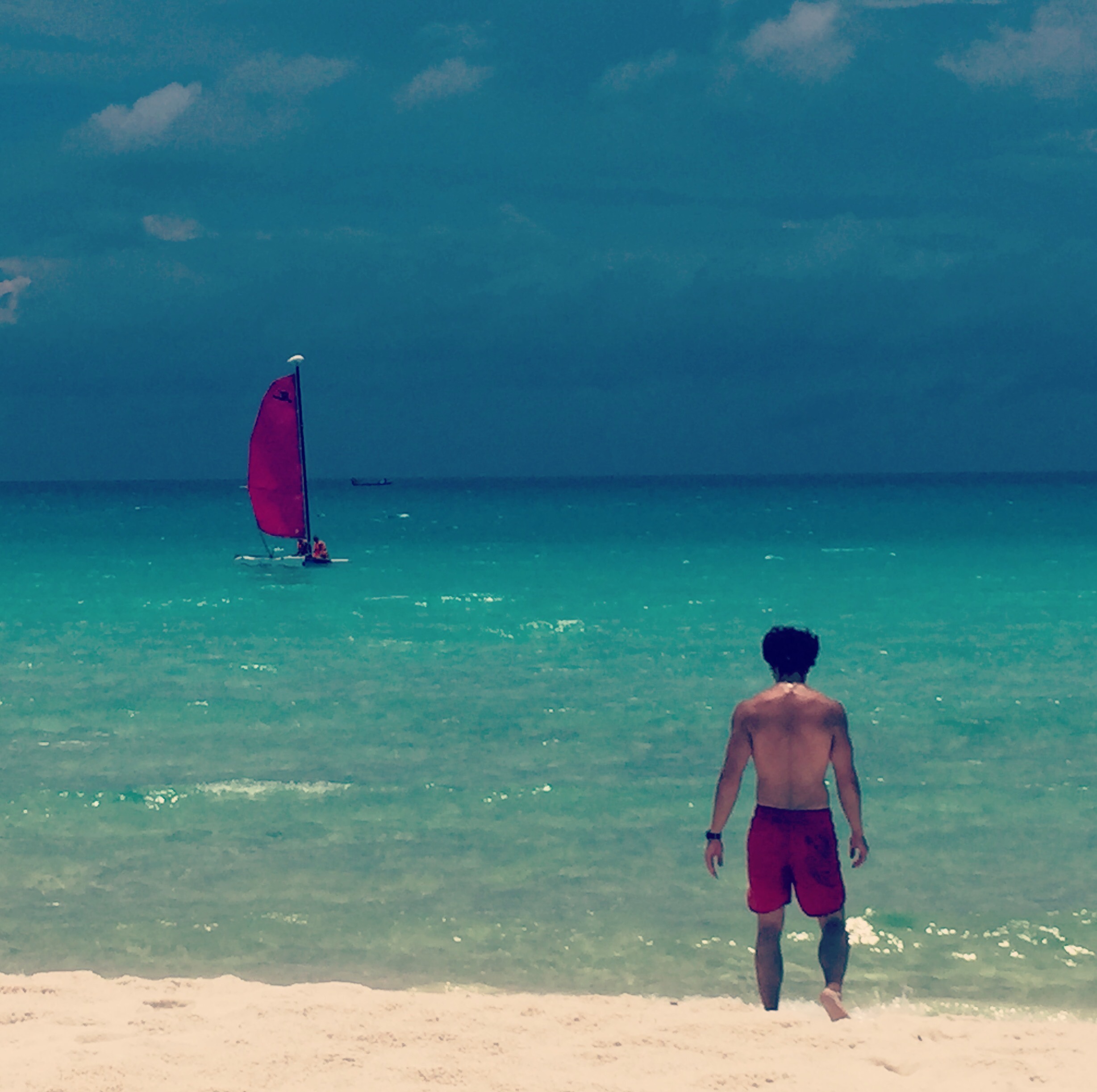 We met a French couple, Louis and Stefanie, who own a modular catamaran company. They are just launching their first boats, and they are taking a trip through Cambodia before their lives get hectic. Naturally, when we had some free time on Koh Rong island, we decided to rent a catamaran on the beach and take it out for an hour. Crystal water, “caster sugar sand,” (Alice’s description, 100% accurate) blue skies, and a good wind made us all very happy indeed.