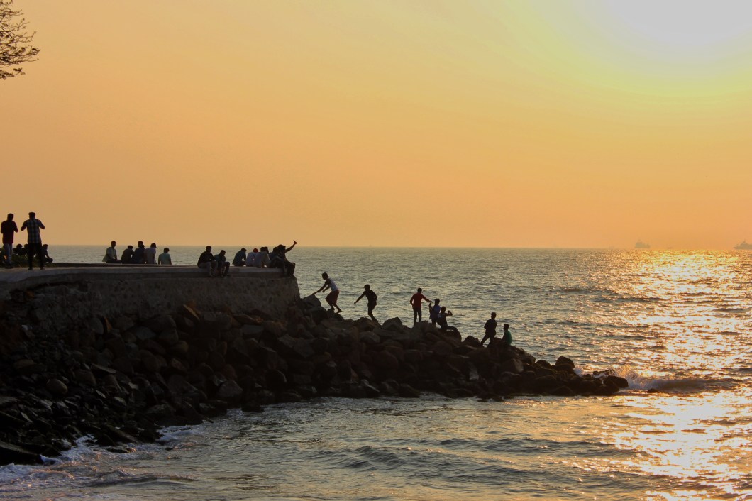 Walk to the shore to witness a golden sunset. The air off the coast is fairly polluted, it seems, but that just means it is more colour splashed upon India by Heaven. Wonder why there are so many people out, and then remember it is Sunday. Walk to one of the hotels and have dinner – the fish is excellent, and so are the chips. Then, return to your room, take melatonin and go to sleep.
