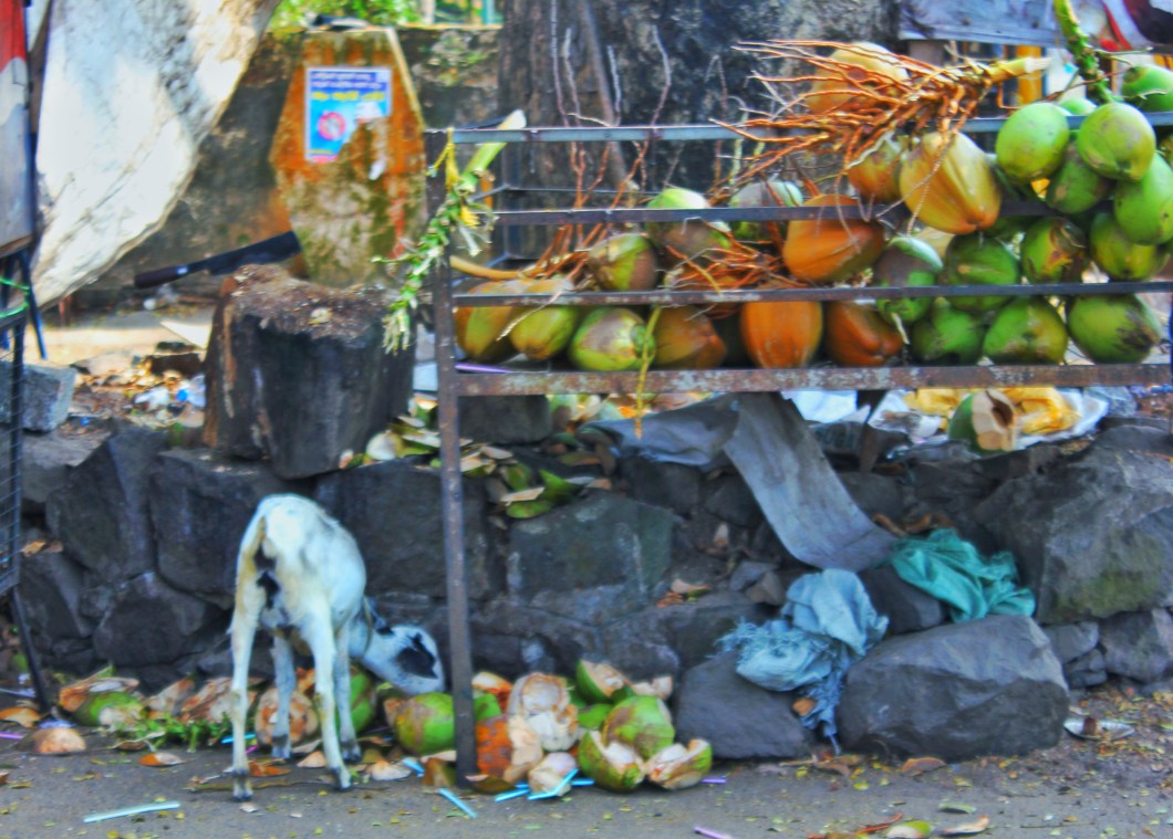 Now, walk back to the ferry terminal. Find yourself in line in front of two South Africans, one a recent graduate and one a filmmaker. Explain to them about the different-gender lines. The recent graduate – with a tie-dye shirt, twenty wood-bead necklaces, and John Lennon sunglasses – won’t be able to deal with it and will sit down, and you’ll learn, from the filmmaker, about surfing, films, and Sri Lanka. When you get off the ferry on the other side, you’ll watch as they pass a group of school children. Normally, the children get excited with foreigners, shouting “hello!” to them excitedly. The graduate will leap toward them and shout a greeting of his own, and try to high-five several of them, and they will shrink back in a cartoonish mass, and murmur a muted response.