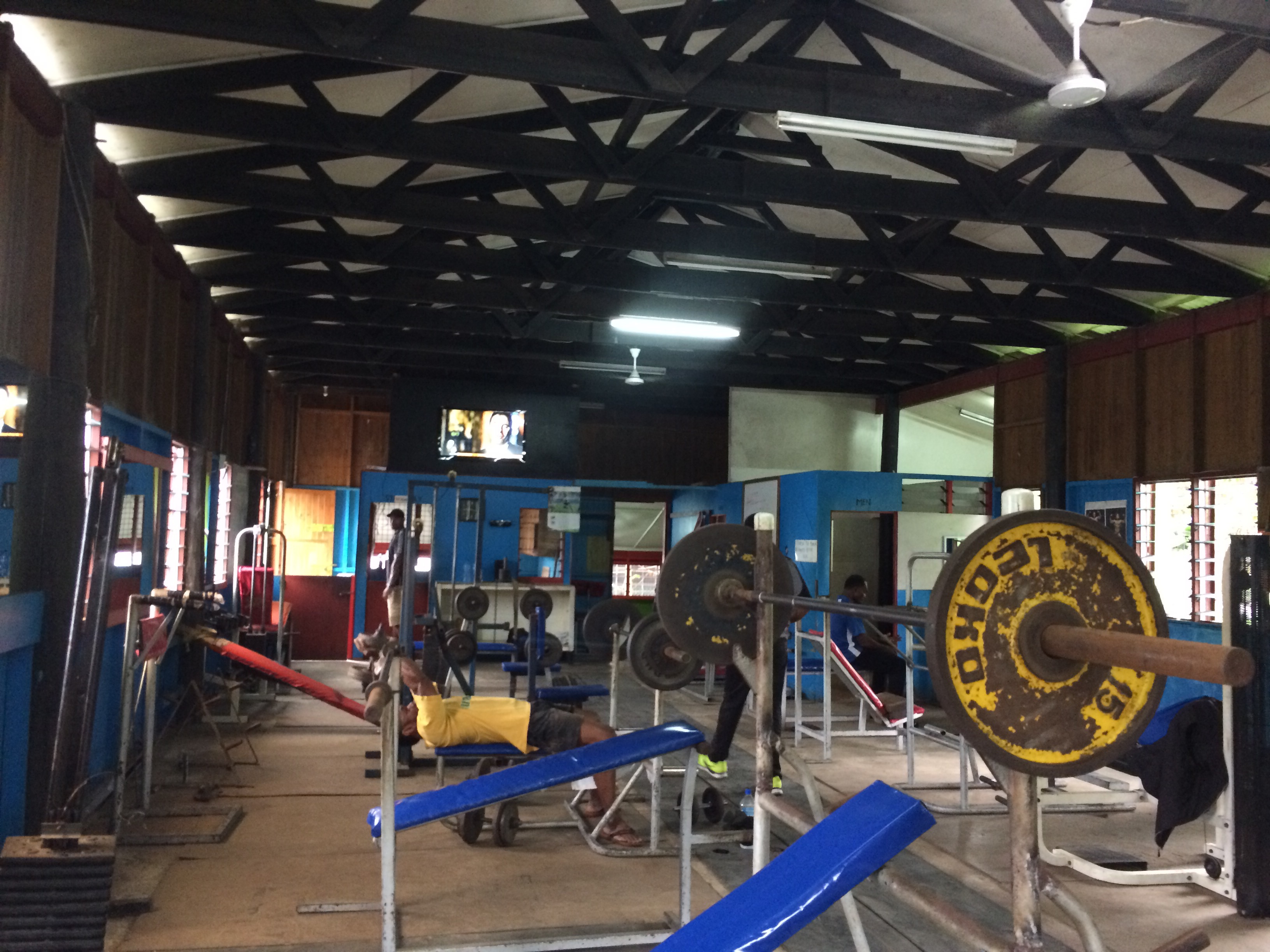 - It is the oldest gym in Fiji, and is where the Fijian Rugby Team trained for years. History is infused in the walls, the beams, the floorboards – soaked with the sweat and blood of champions. (And check out the support pillar on the right – basically, the whole building is held up with roughly finished tree trunks.)