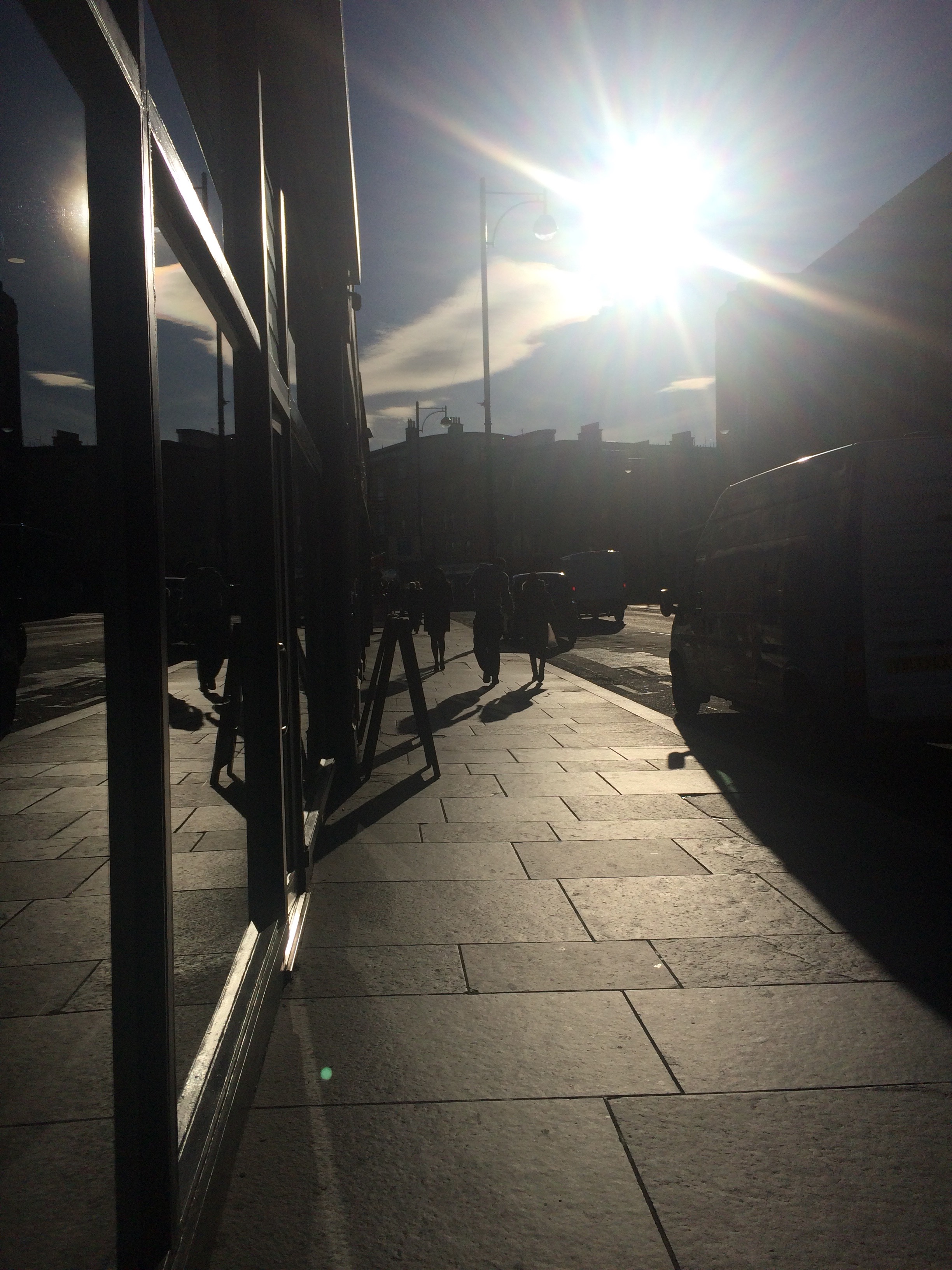 Part of living in a Northern clime is that in winter, there is far less sun. I’ve never lived anywhere as far north as Edinburgh, and I didn’t realize what this would mean for daylight until today, when I was walking down the street at noon and took these pictures.