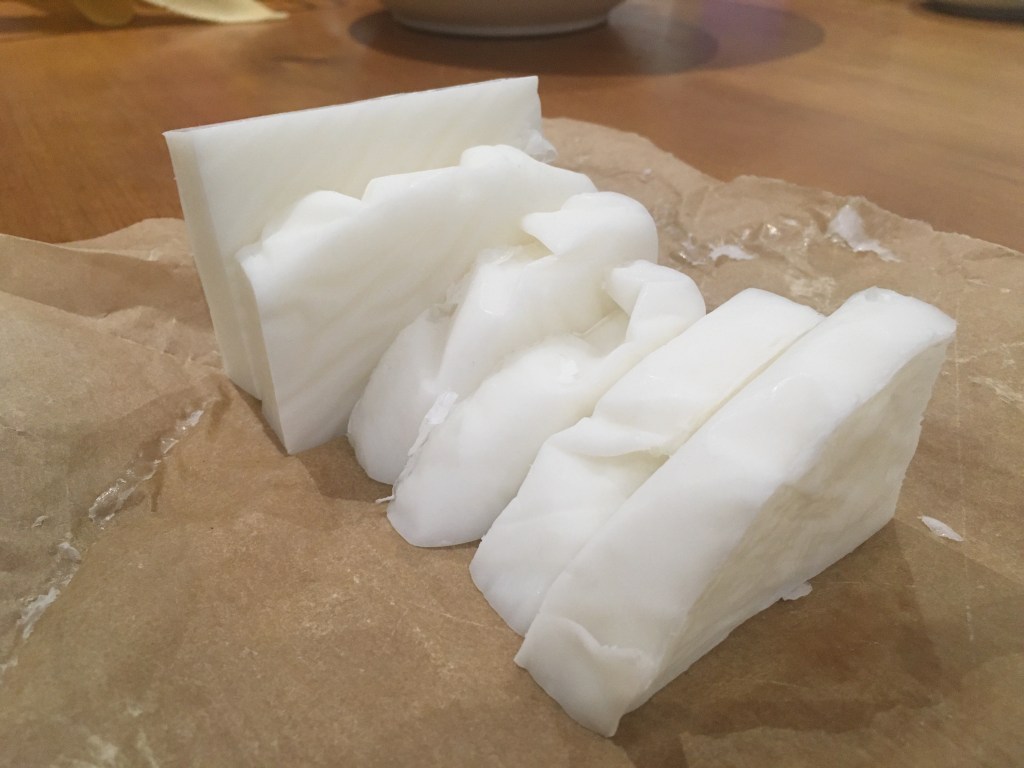 The bourbon soap…well, I have forgotten it. But the lavender soap turned out lovely. And cheap! I am pretty excited about using it up, and giving it as gifts. Daniel thinks it smells “Niiiiiiiice.”