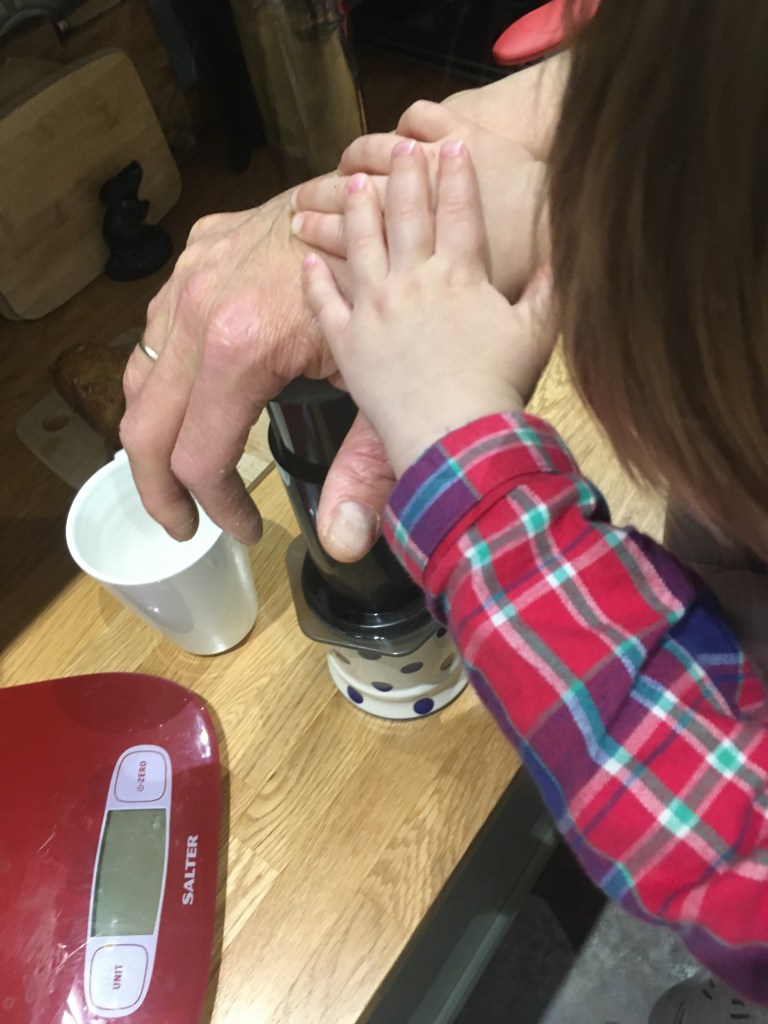 He likes helping me press down on my Aeropress to make coffee,