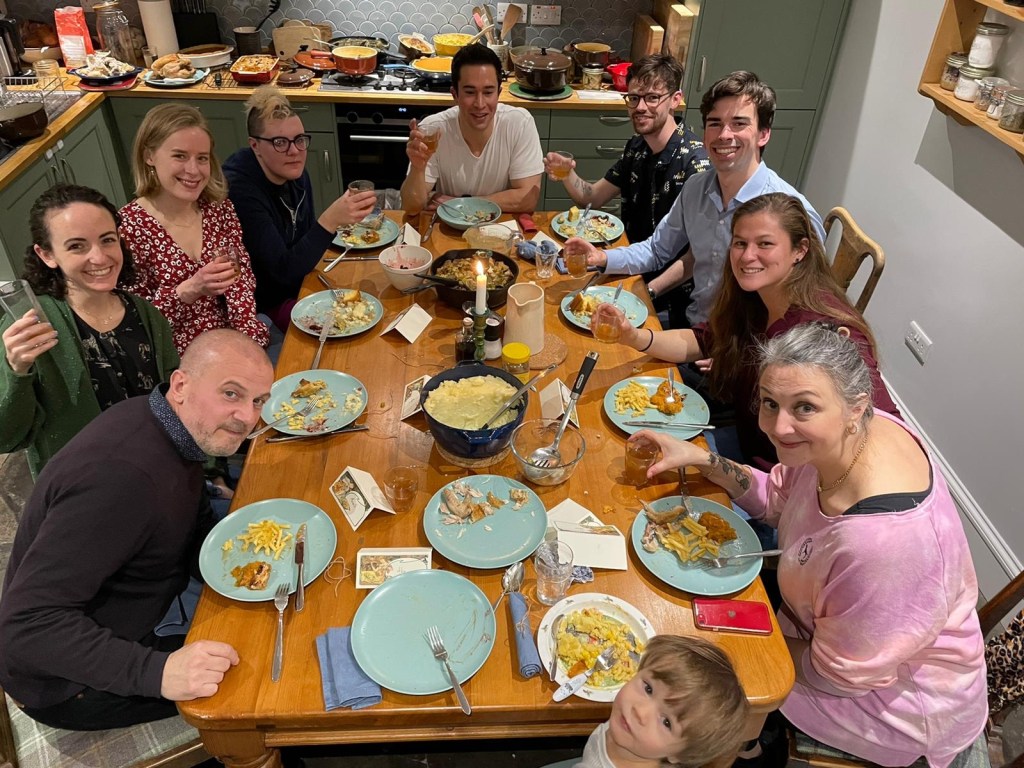 I decided that we would have a full Thanksgiving feast, and invited people. We ended up with ten adults and Daniel, crowded around our kitchen table, talking over each other in constantly evolving conversations. Kristy came over early and made pumpkin pies; I made everything else, from sourdough stuffing to bourbon nutmeg caramel sauce to a traditional punch that involved an entire bottle of Cuban rum that we finished 45 minutes into the meal. Daniel took a long nap so that he could stay up late, and he sat on his chair at the end of the table and shouted “I WANT MORE MAC AND CHEESE!” like a little emperor and I would hurry over to get more in his beautiful little mouth. It was both glorious and tragic. The old me would have had people over until two a.m. on a school night, smoking hookahs, finishing bottles, making a scene like Fitzgerald described in the hotel in the Great Gatsby; people would have looked up at our windows and wished they could have been part of our select crowd. With Daniel, I had to stop myself from hushing people in the hallway when he was going to sleep at 10.