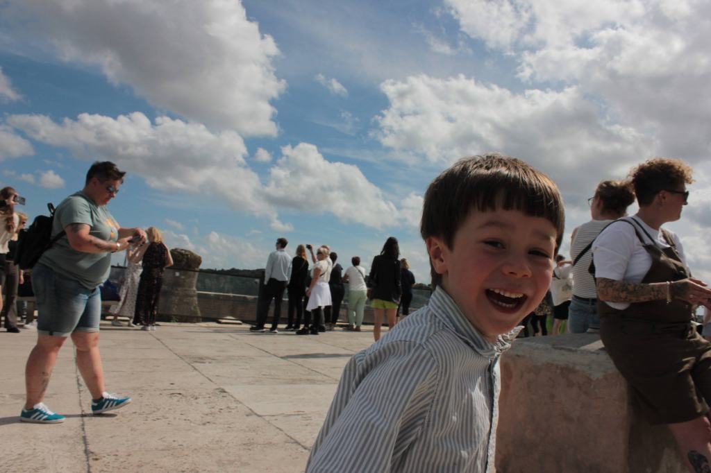 - Put the jar on a plate or bowl to catch any dripping liquid, and put a small glass cup on the cling film to push the peppers, garlic, and ginger down under the brine. For this, I like Duralex glasses; they have rounded edges, and I believe – without any evidence – that they are reinforced glass, so if they fall, they will not shatter as easily. Also, they are French glass, and I somehow, apparently, developed a strong bias for French glass.